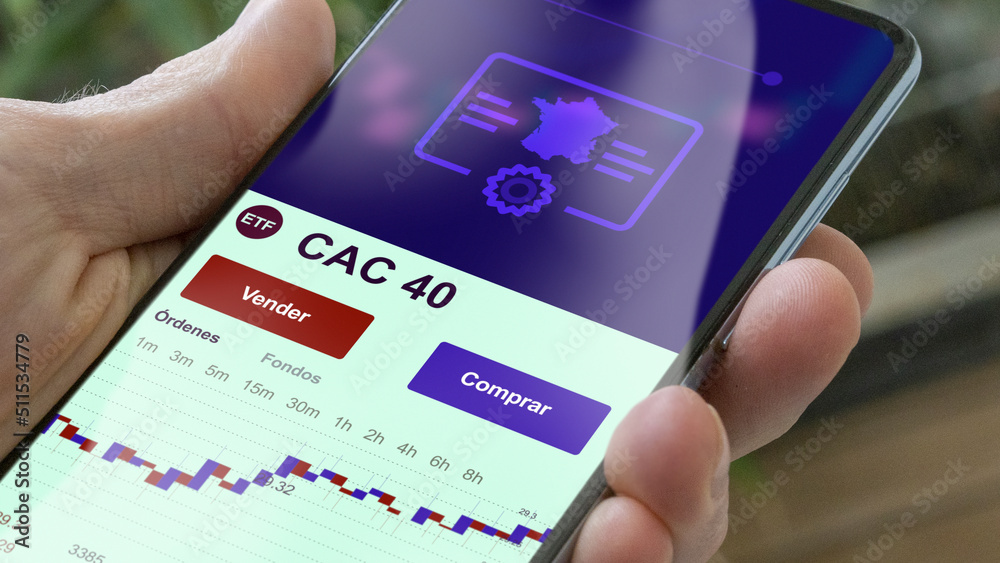 Invertir En Francia Etf Un Inversor Compra O Vende Un Fondo Cac 40 Etf Texto En Espanol Stock Foto Adobe Stock