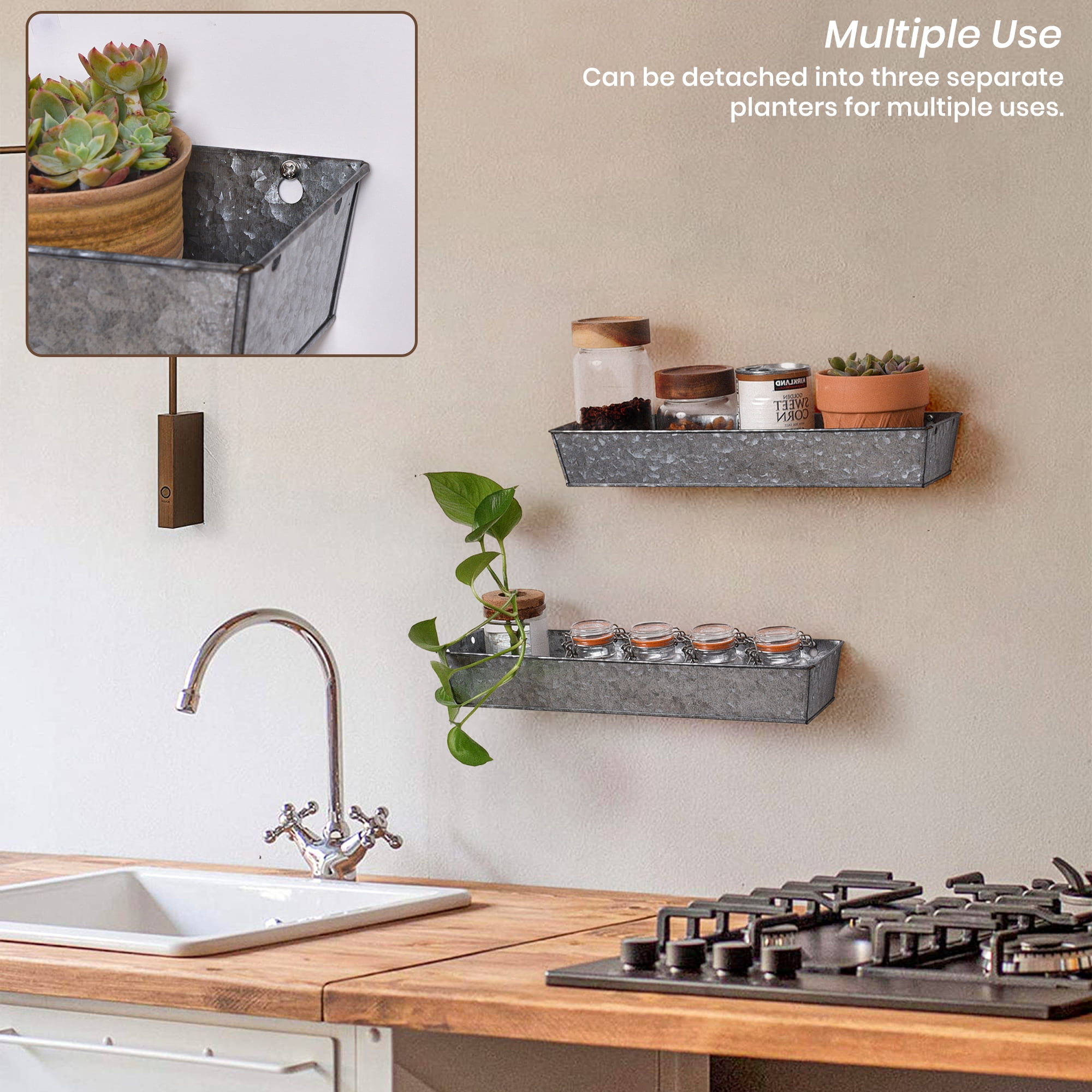 3 Tier Iron Wall Planter Rectangular Planter Pot Planter Box For Indoor And Outdoor Silver Walmart Com